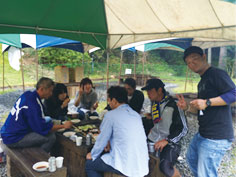 終了後は、これまた恒例の家族同伴親睦BBQ大会を一乗滝小次郎の里ファミリーパークで行いました。